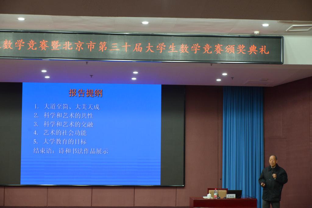 12月15日上午,中国科学院院士严加安教授应邀来pg电子官网做了《我心目中的科学与艺术》的报告,畅谈对科学与艺术的认识。pg电子官网师生以及前来参加第十一届全国大学生数学竞赛暨北京市第三十届大学生数学竞赛颁奖典礼的北京地区高校师生在pg电子官网交流中心二层报告厅仔细聆听了报告,并在会后与严院士进行了热烈互动!
